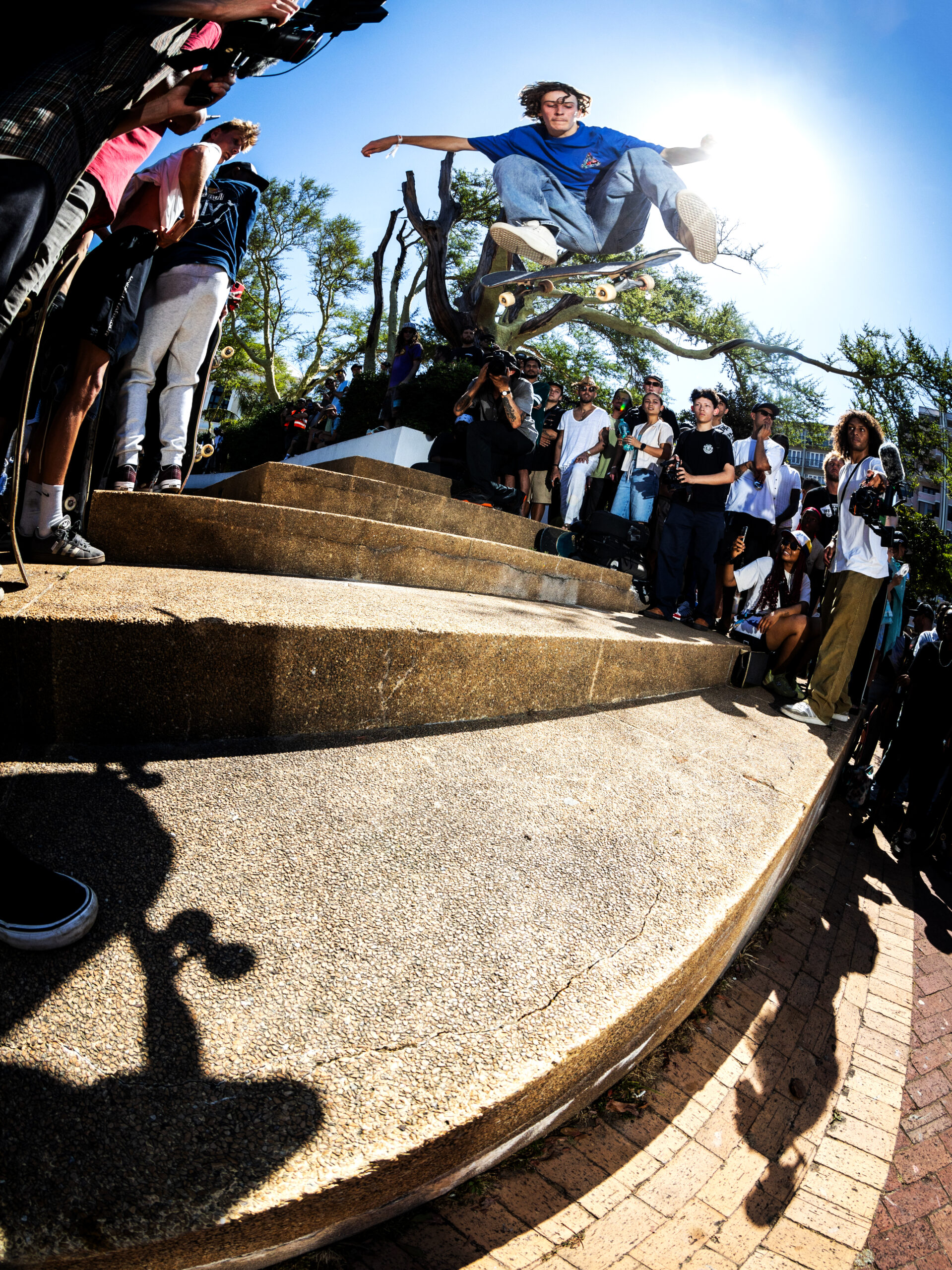 Zion Wright showed up to Civic Centre with insane power and speed, making this obstacle look tiny! Front Noseblunt for the masses