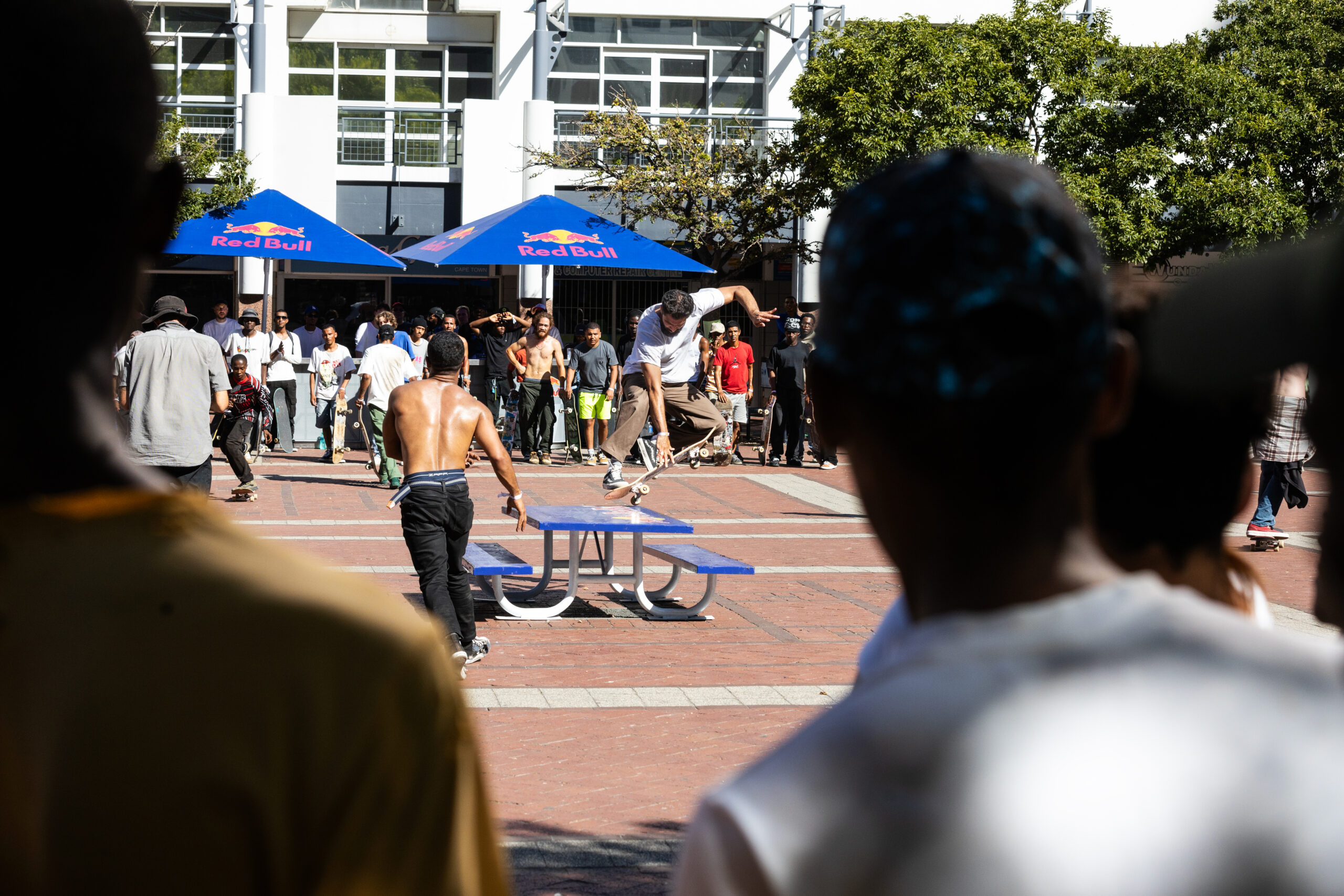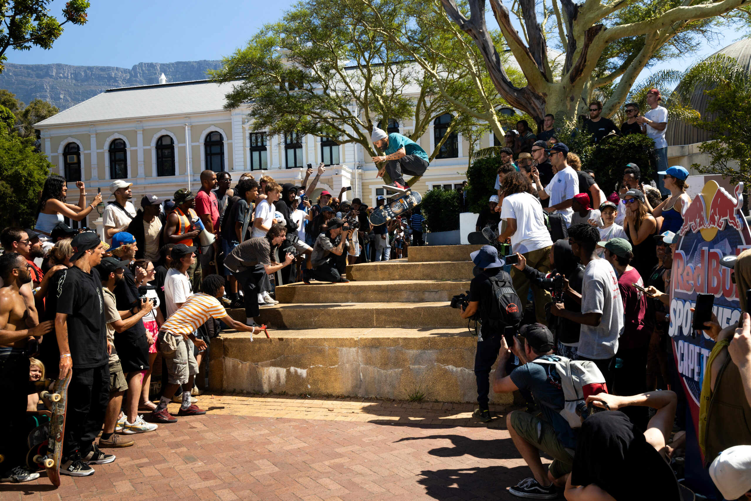 This was hand-down one of the wildest days in SA skateboarding to date. The good folks at Red Bull brought the Spot Check concept to Cape Town along with Zion Wright, Jamie Foy, Ryan Sheckler, CJ Collins, Chloe Covell, Gavin Bottger and one of SA’s finest, Brandon Valjalo. The concept for the day was to hit 4 iconic spots in Cape Town that generally are not friendly to skateboarders on any given day.